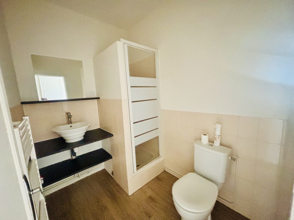 – Une salle d’eau (une cabine de douche et une vasque, muni d’un miroir, des toilettes) ;