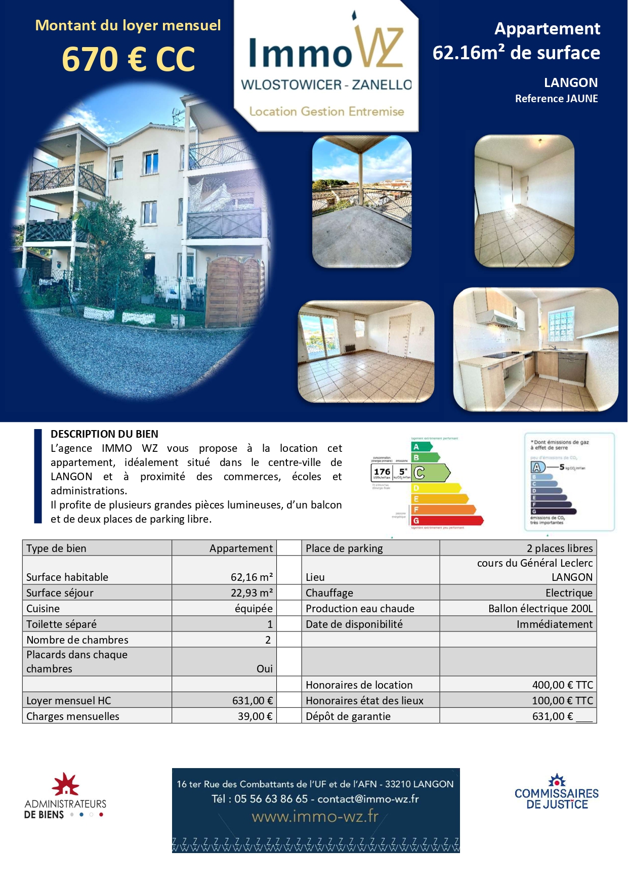 L’agence IMMO WZ SAS, Wlostowicer – Zanello, Location & Gestion & Entremise de Langon, vous propose un appartement T3 de 62,16 m², sans vis à vis, qui offre une pièce de vie lumineuse et un agencement optimisé pour un confort de vie idéal.
