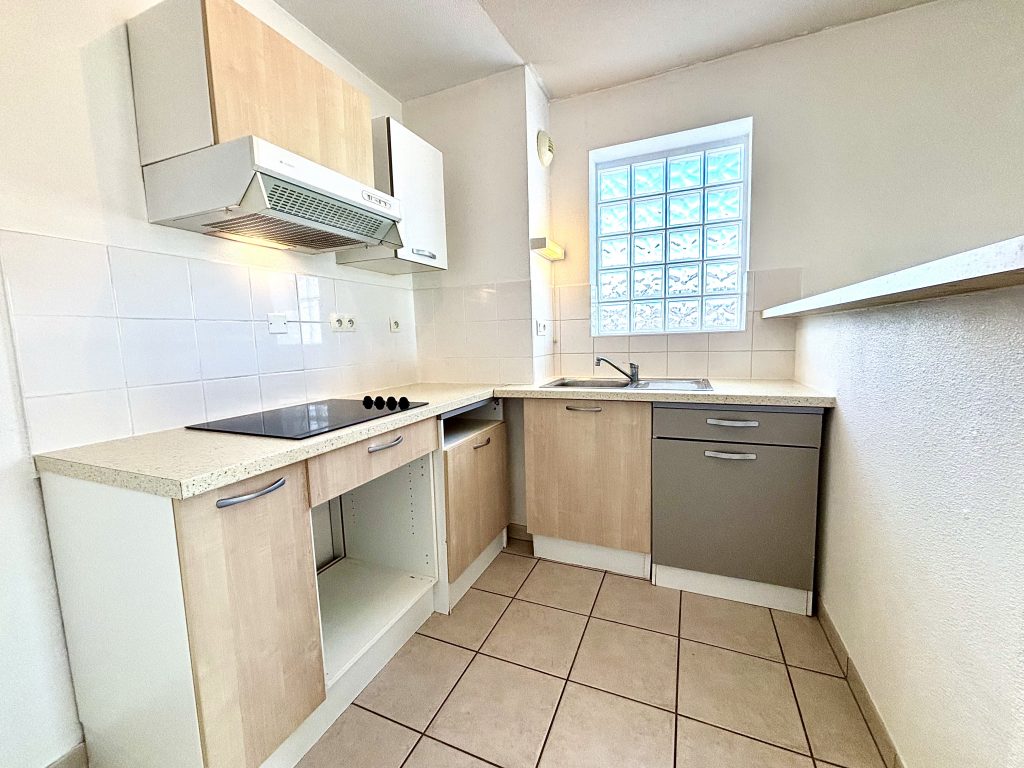 – Une cuisine ouverte meublée et équipée (une hotte aspirante et une plaque vitrocéramique) ;